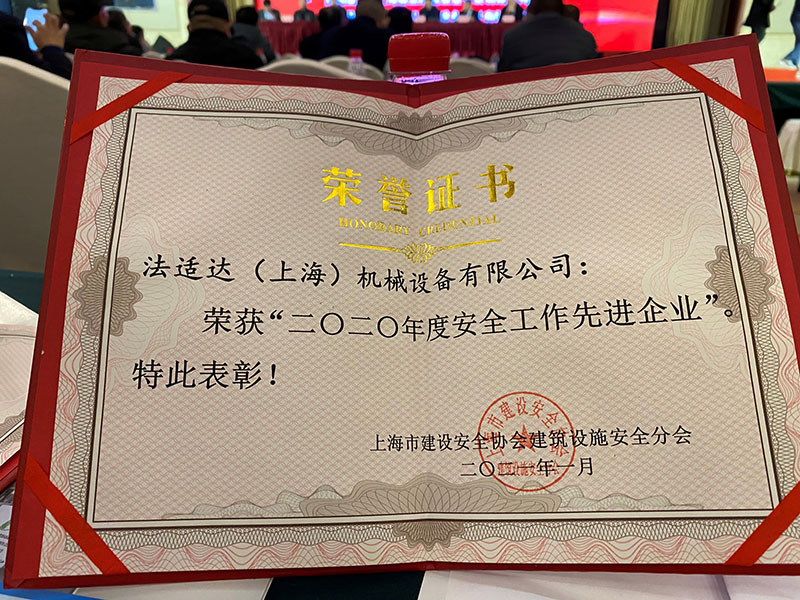 法適達公司榮獲上海市建設安全協會建筑設施安全分會頒發的安全工作先進企業以及個人先進。